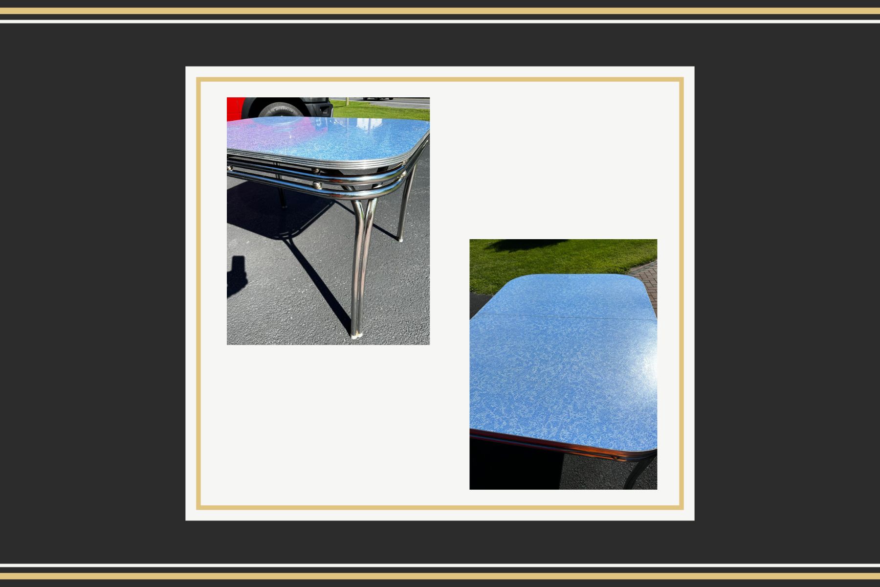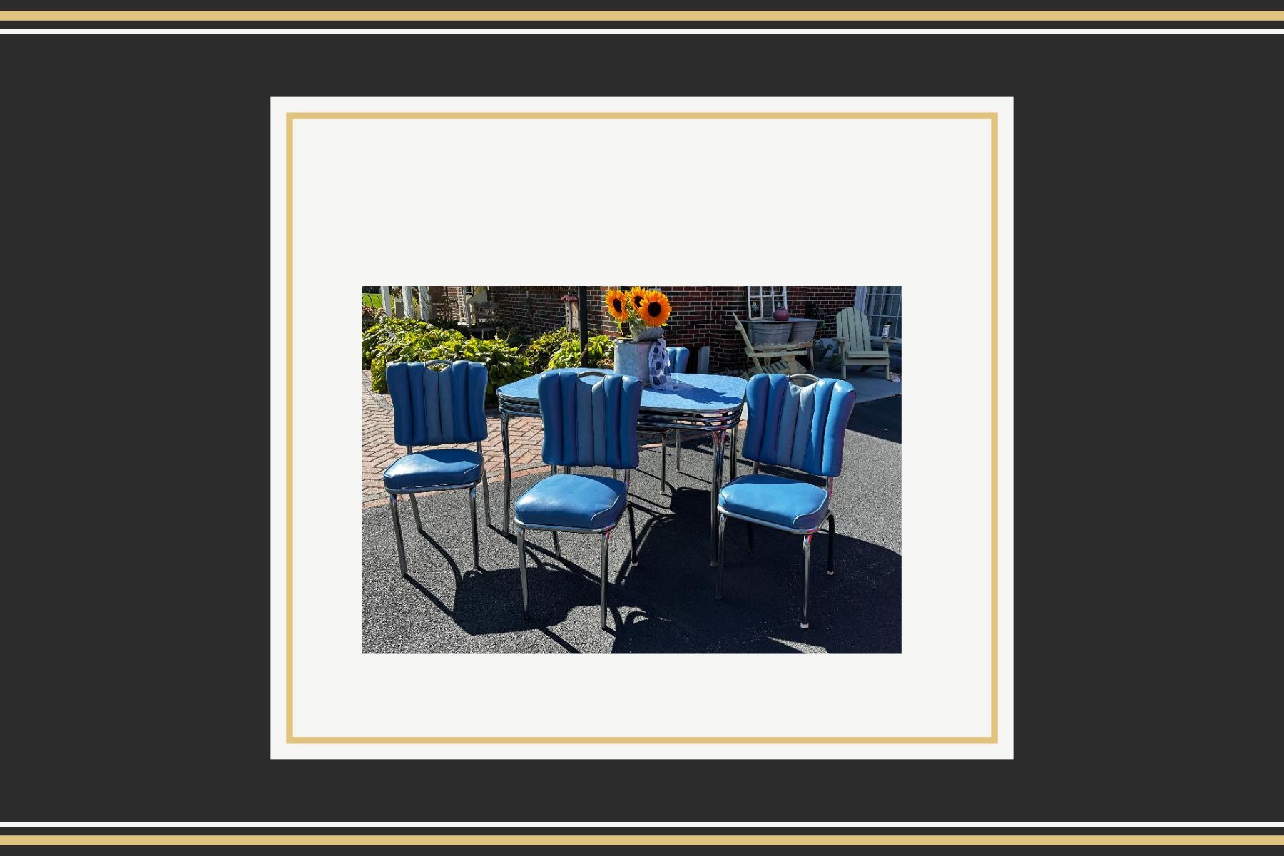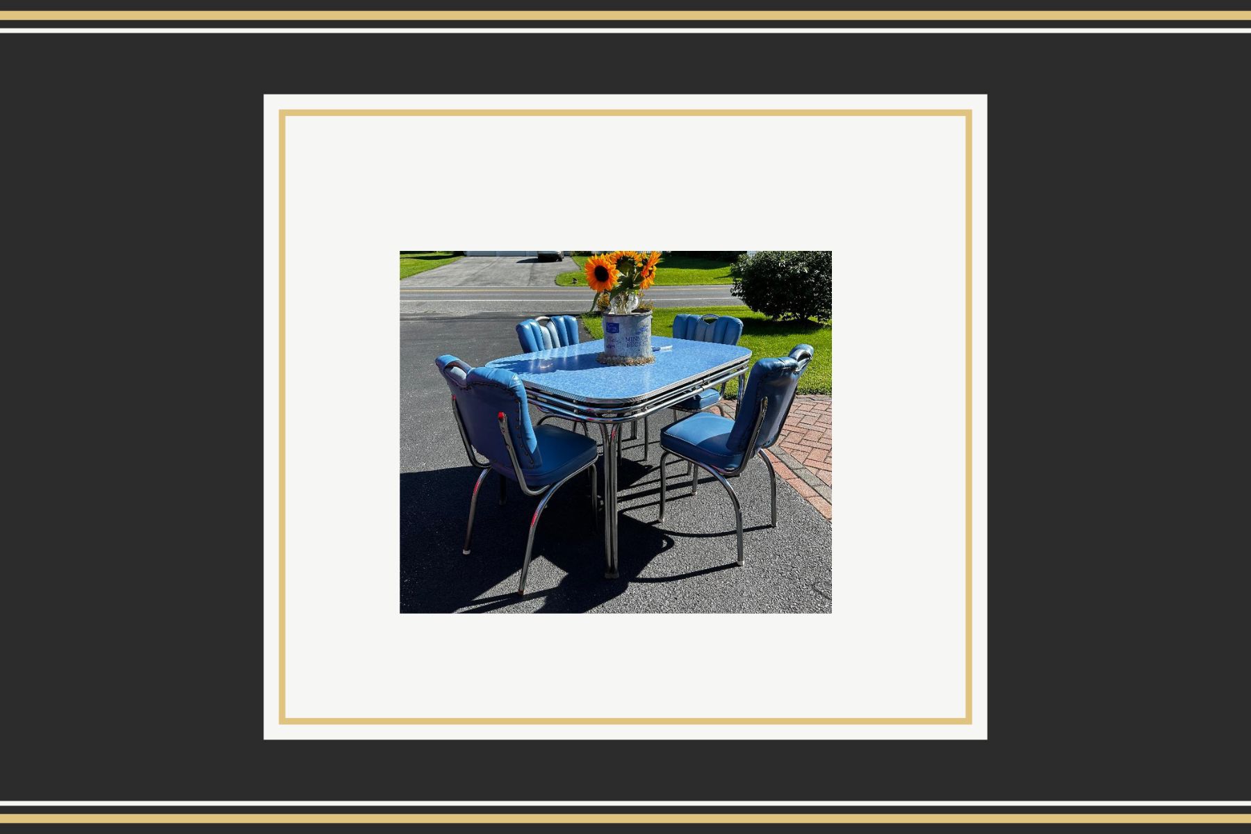 This beautiful piece comes from an estate in Lehigh Valley and was still in use when I acquired it. The chairs are in excellent condition with no rips or tears. The blue color is rare and makes this a standout accent for anyone seeking a one-of-a-kind kitchen table for a mid-century room. Price is firm.