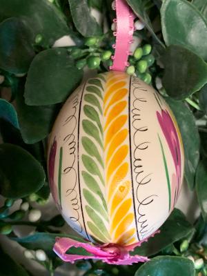 Another Beautiful vintage egg out of an estate in Berks County. This is also the size of a duck egg and hollow with a ribbon attached so it can hang.