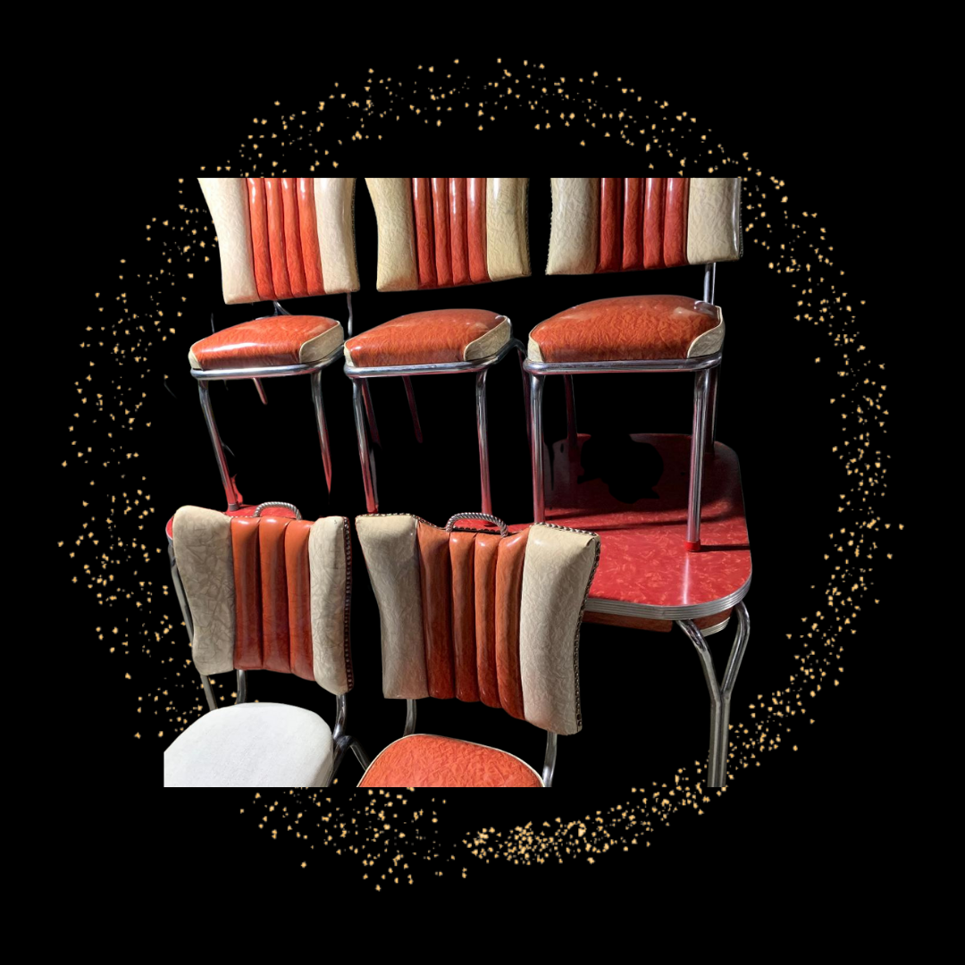 Beautiful Red 1950s Formica Table and 5 Chairs